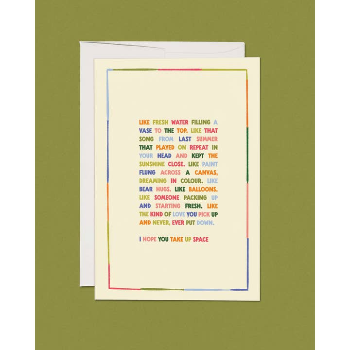 Regular price $7.50A pretty, poetic card to celebrate someone in your life who is making the world a better place just by being who they are. Whatever lies ahead, these kind words will help remind them that they’re exactly where they’re meant to be.
