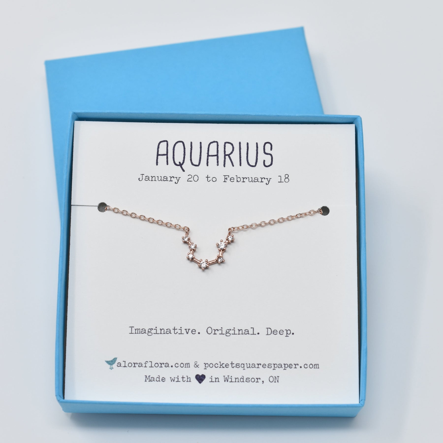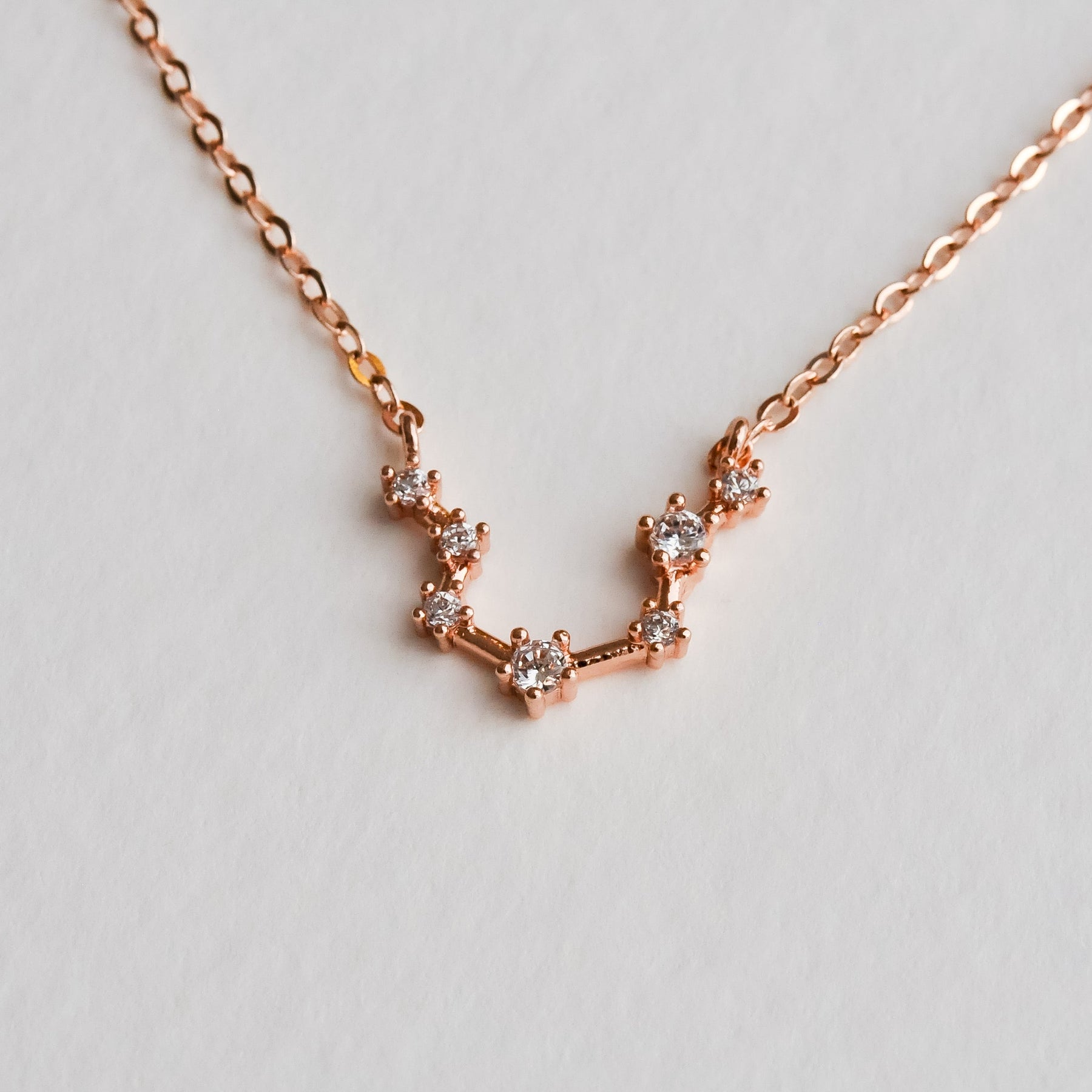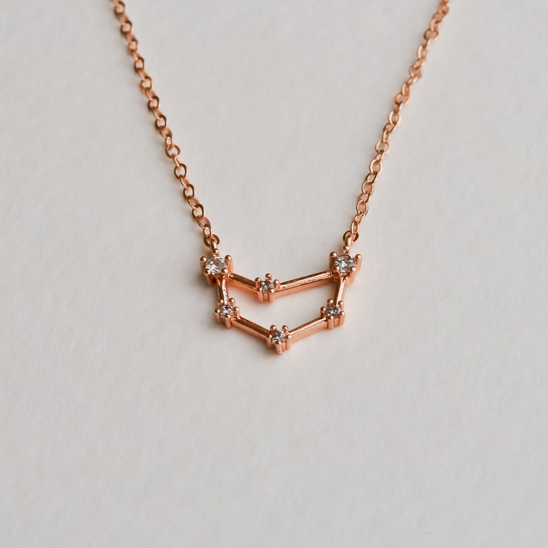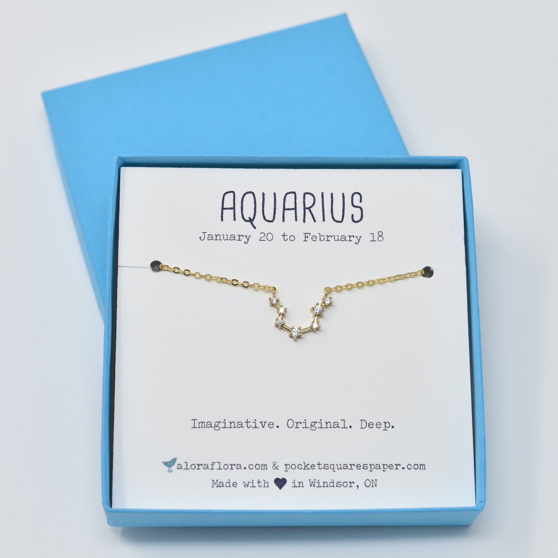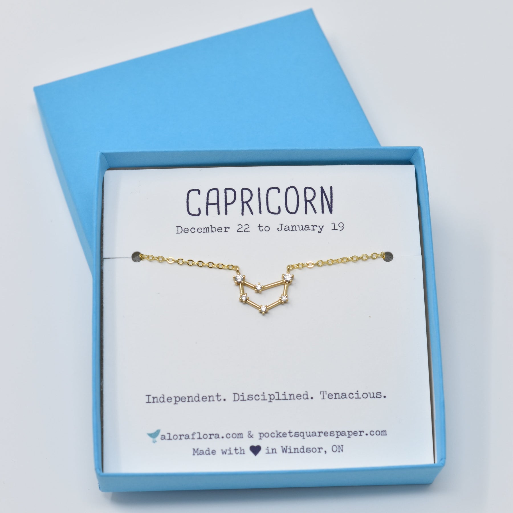 Perfect for gifting, this zodiac constellation necklace comes on a custom necklace card describing the positive traits of your zodiac sign.