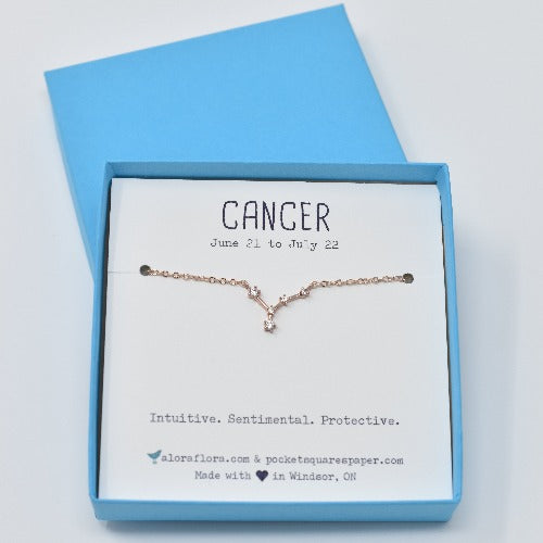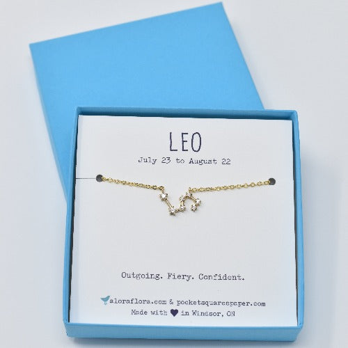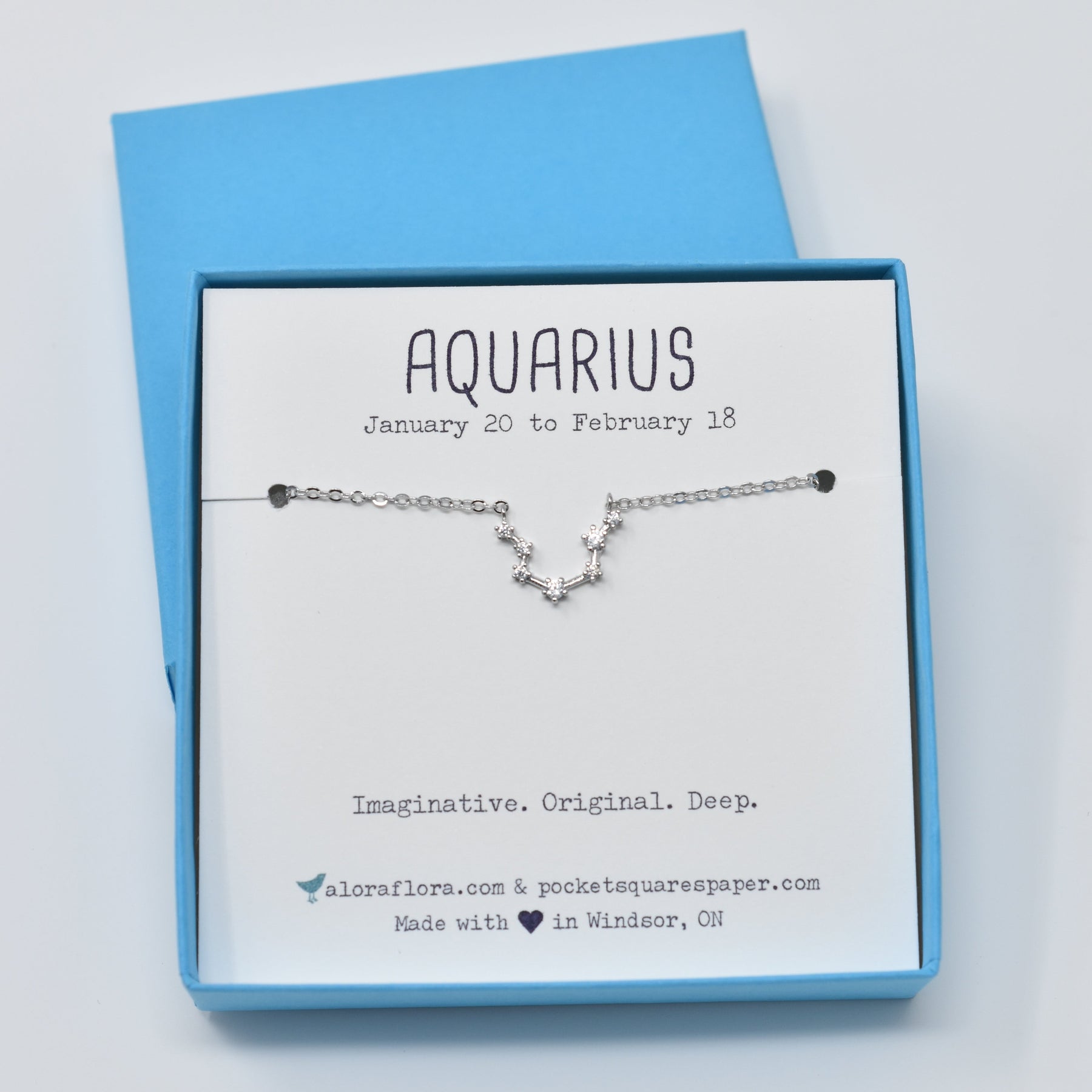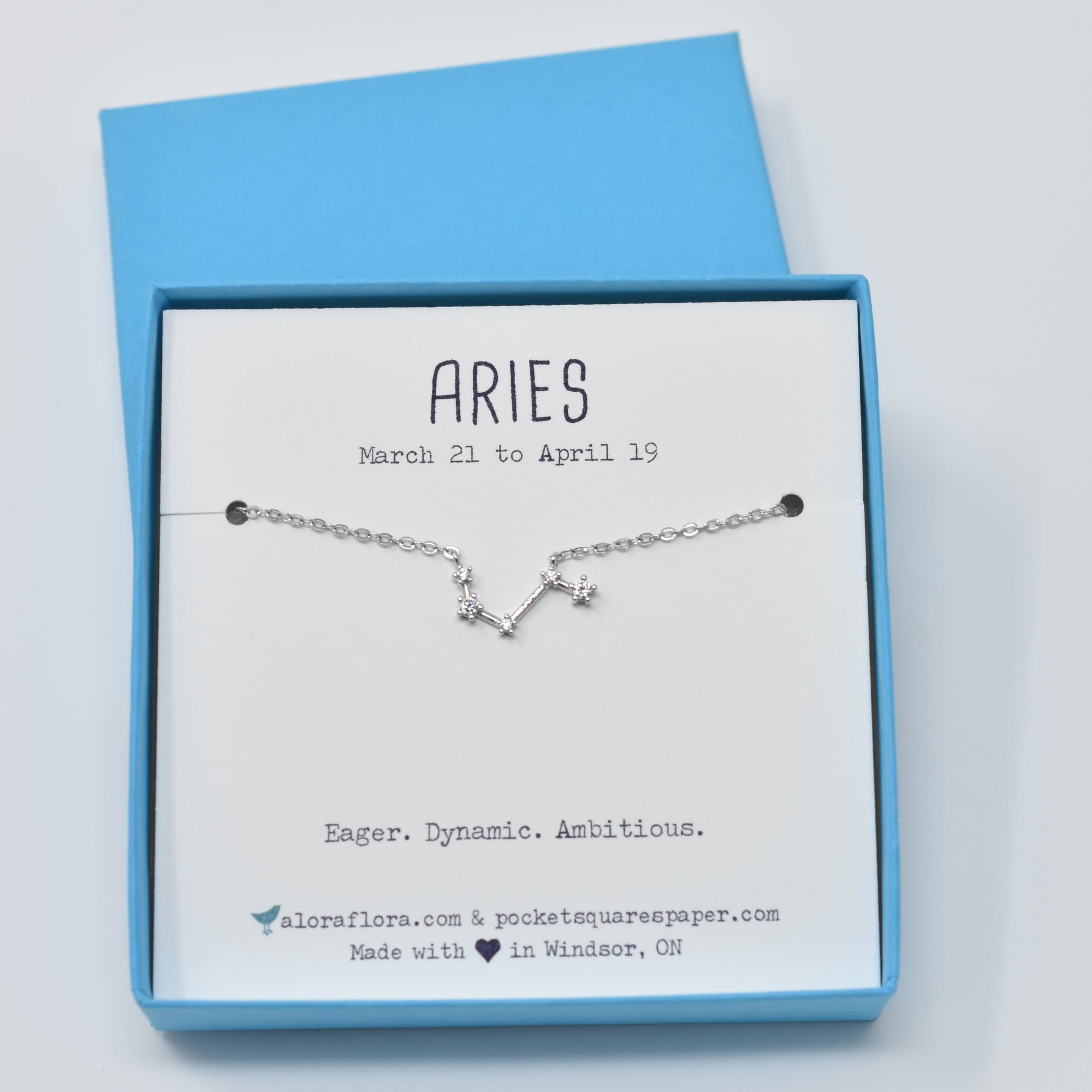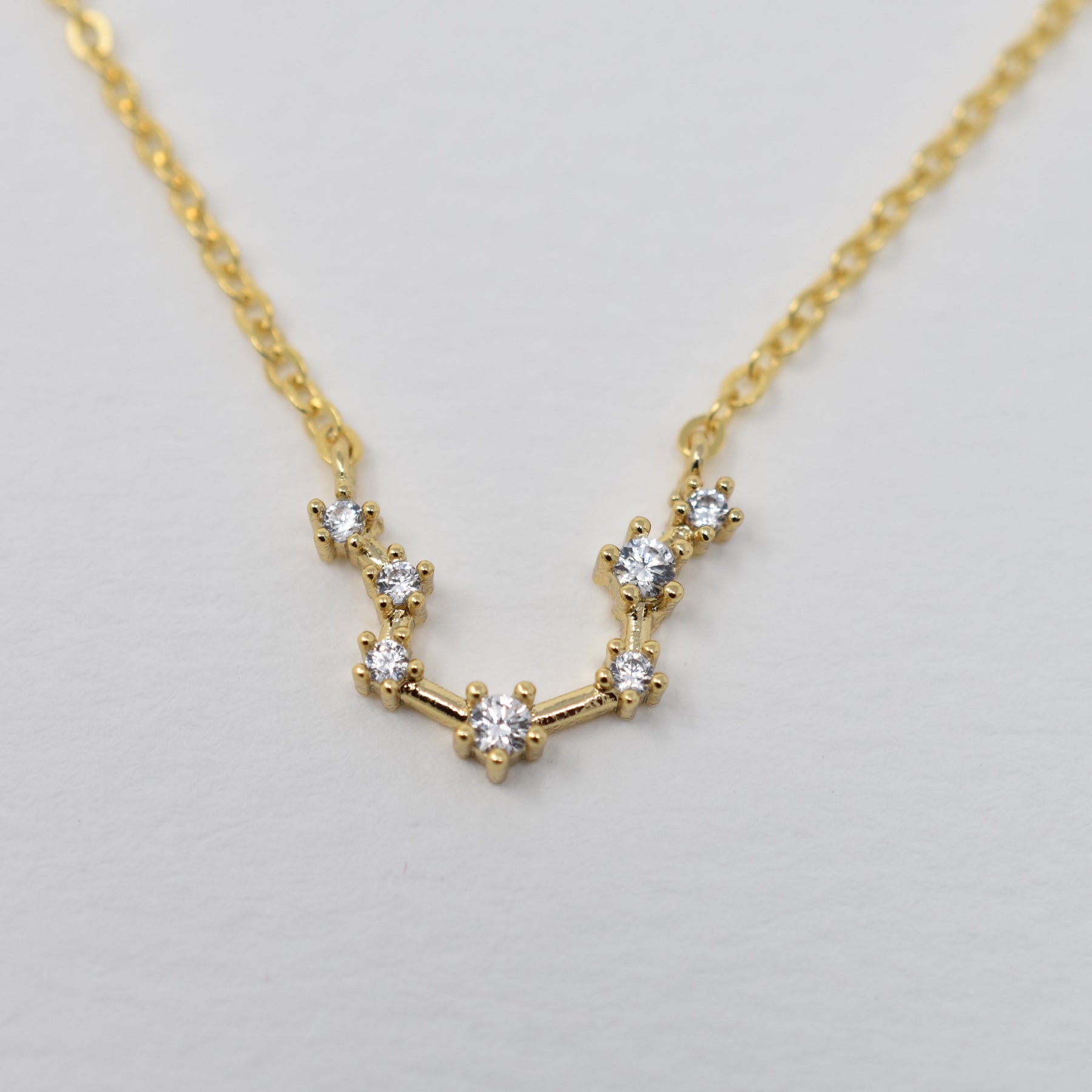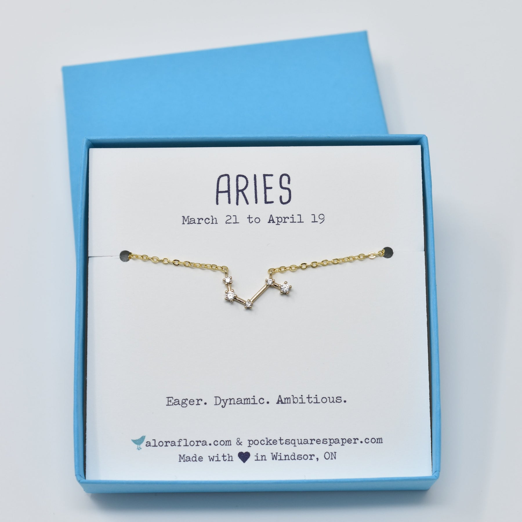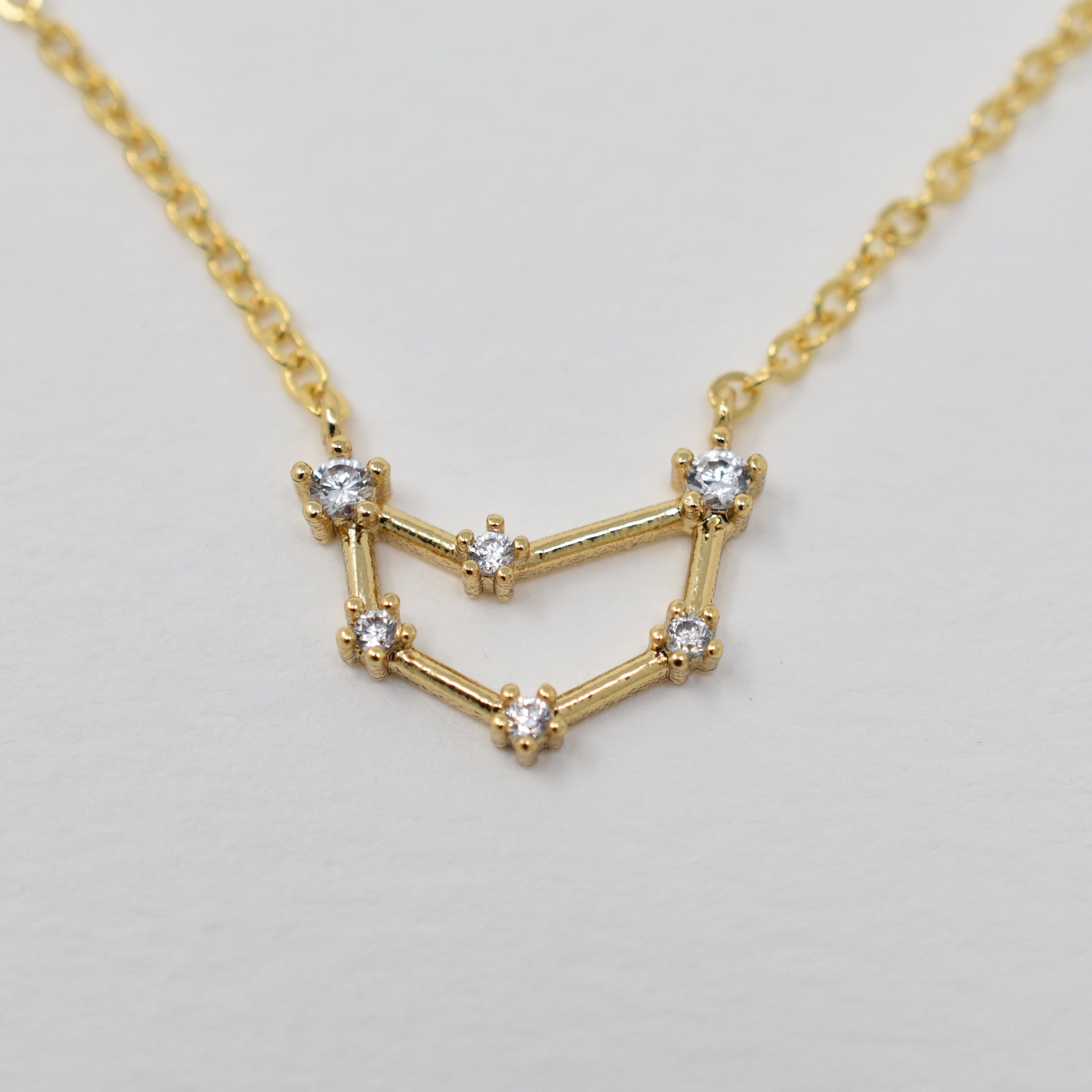 Perfect for gifting, this zodiac constellation necklace comes on a custom necklace card describing the positive traits of your zodiac sign.